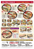 定番メニュー ・寿司 ・ご案内 ・ご予約メニュー オードブル 二段弁当 白飯弁当 ※前日正午までにご連絡ください。